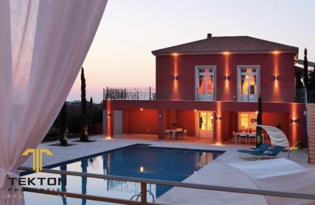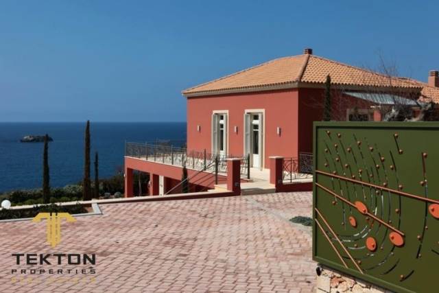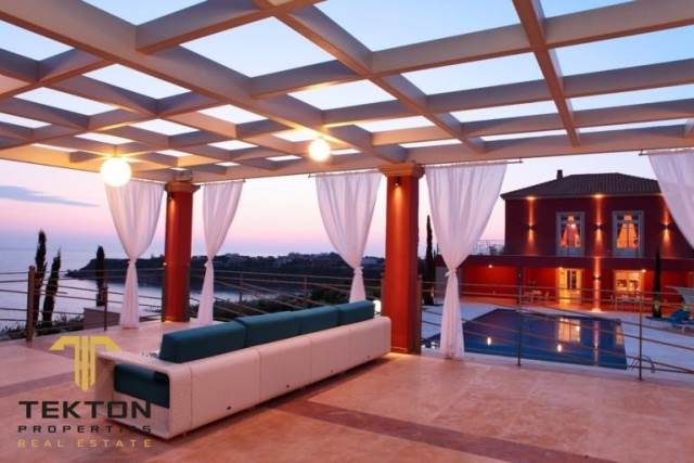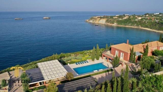 Κεφαλλονιά, Λειβαθώ, Βίλα Προς Πώληση, 636 τ.μ., σε οικόπεδο 4200 τ.μ., Έτος κατασκευής: 2012. Η εξαιρετική βίλα extra class βρίσκεται στην αμμώδη παραλία του Αϊ Χέλη. Για την κατασκευή του ακινήτου έχουν χρησιμοποιηθεί μόνο υλικά υψηλών προδιαγραφών. Η βίλα είναι χτισμένη σε γκρεμό με απέραντη θέα στη θάλασσα. Αποτελείται από 5 υπνοδωμάτια και 7 μπάνια. Ο χώρος στάθμευσης, η θέα στη θάλασσα και η πισίνα υπερχείλισης είναι εγγυημένα. Επίσης η εξαιρετική βίλα διαθέτει προσωπική κάβα, σκεπαστή βεράντα στο άκρο του γκρεμού με εκπληκτική θέα στη θάλασσα. Η βεράντα έχει εμβαδόν 200 τετραγωνικά μέτρα. Το αποκορύφωμα του ακινήτου είναι η απομίμηση αρχαίου ελληνικού θεάτρου που μπορεί να χρησιμοποιηθεί για συναντήσεις και εκδηλώσεις. Υπάρχει επίσης ένα εκκλησάκι στο οικόπεδο του ακινήτου για τελετές ή γάμους. Κατά συνέπεια, το ακίνητο μπορεί να χρησιμοποιηθεί για ιδιωτικούς και εμπορικούς σκοπούς.*** Tekton Properties, Τηλ. Επικοινωνίας: 6944831817, email: tekton@tektonproperties.gr***Kefallonia, Leviatho, Villa For Sale, 636 sq.m., on a plot of 4200 sq.m., Year of construction: 2012. The exceptional extra class villa is located on the sandy beach of Ai Heli. Only high quality materials have been used for the construction of the property. The villa is built on a cliff with an endless view of the sea. It consists of 5 bedrooms and 7 bathrooms. Parking, sea view and infinity pool are guaranteed. Also the exceptional villa has a personal wine cellar, a covered terrace at the end of the cliff with an amazing view of the sea. The terrace has an area of 200 square meters. The highlight of the property is the replica of an ancient Greek theater that can be used for meetings and events. There is also a chapel on the grounds of the property for ceremonies or weddings. Consequently, the property can be used for private and commercial purposes.*** Tekton Properties, Tel. Contact: 6944831817, email: tekton@tektonproperties.gr***