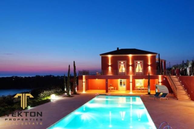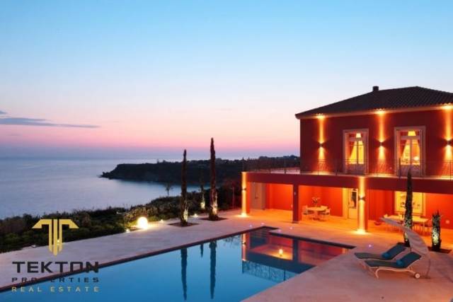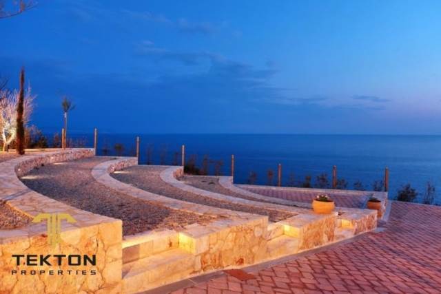 Kefallonia, Leviatho, Villa For Sale, 636 sq.m., on a plot of 4200 sq.m., Year of construction: 2012. The exceptional extra class villa is located on the sandy beach of Ai Heli. Only high quality materials have been used for the construction of the property. The villa is built on a cliff with an endless view of the sea. It consists of 5 bedrooms and 7 bathrooms. Parking, sea view and infinity pool are guaranteed. Also the exceptional villa has a personal wine cellar, a covered terrace at the end of the cliff with an amazing view of the sea. The terrace has an area of 200 square meters. The highlight of the property is the replica of an ancient Greek theater that can be used for meetings and events. There is also a chapel on the grounds of the property for ceremonies or weddings. Consequently, the property can be used for private and commercial purposes.*** Tekton Properties, Tel. Contact: 6944831817, email: tekton@tektonproperties.gr***