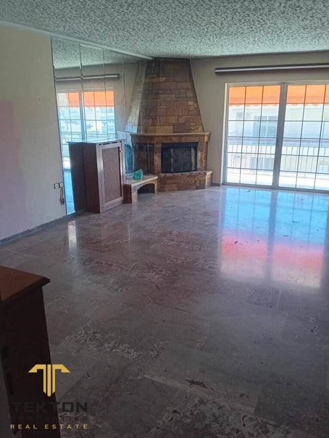Paleo Faliro, Agia Varvara, for sale bright penthouse apartment on the 5th floor, 99 sq.m. with open horizon. Built in 1983, with 2 bedrooms, Living room with fireplace, bathroom & W.C., oil central heating, Floors: marble + parquet, Aluminum Frames, Elevator, Security Door, Fireplace, Double Glazing, Awnings, Air Conditioning, in a quiet area near a commercial street, sports field, park, with easy access to Amfitheas & Kalamakiou Ave. Parking available in the ground floor (pilotis). Tekton Properties Real Estate, Contact Tel.: +30 6946 395 258, email: tekton@tektonproperties.gr
